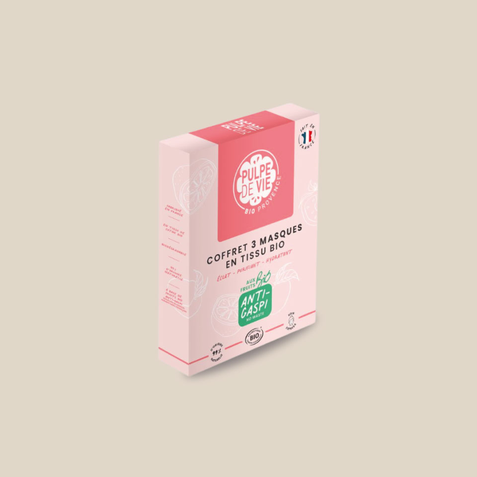 A set of 3 moisturizing face masks made from organic and biodegradable cotton fabric to restore radiance to your skin in 10 minutes flat!