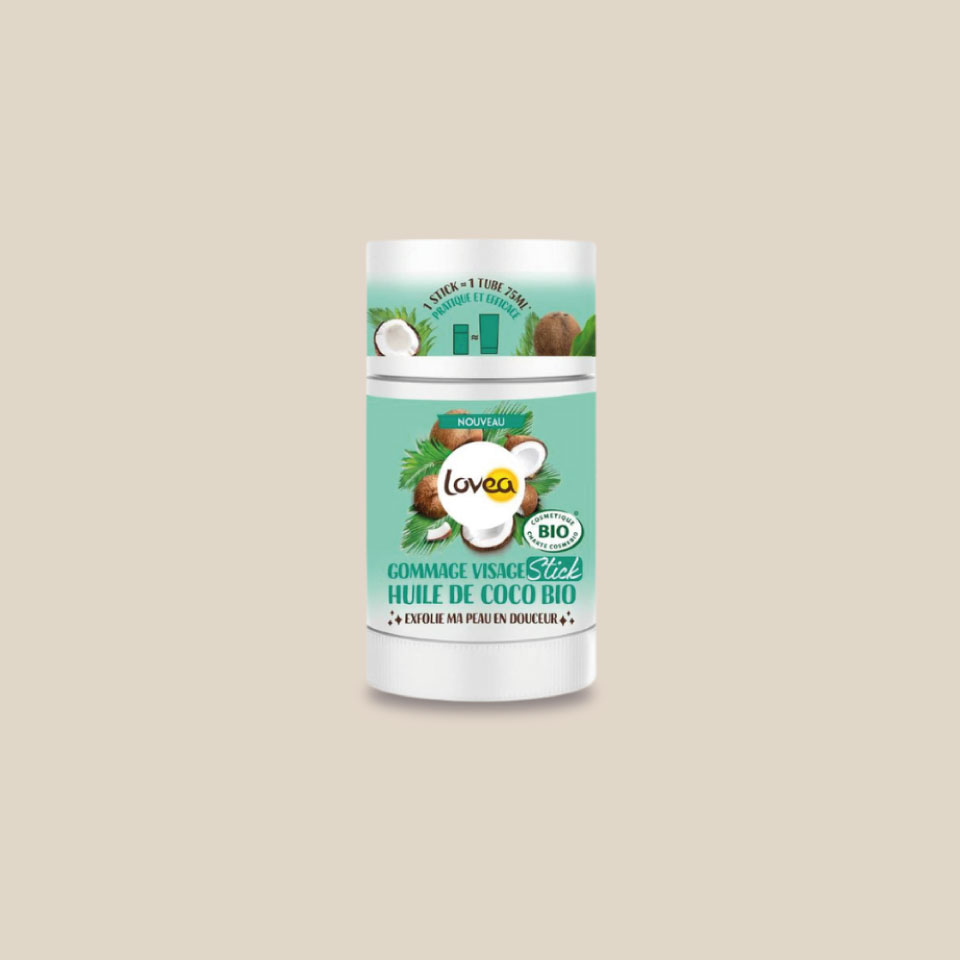 This stick scrub offers gentle exfoliation thanks to 100% natural grains (coconut shell powder and cellulose), which eliminate dead cells without damaging the skin.
