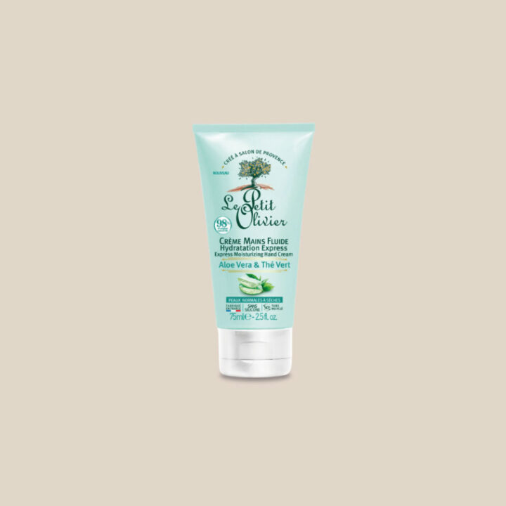 Le Petit Olivier Fluid Hand Cream with Aloe Vera & Green Tea extracts instantly moisturizes hands.