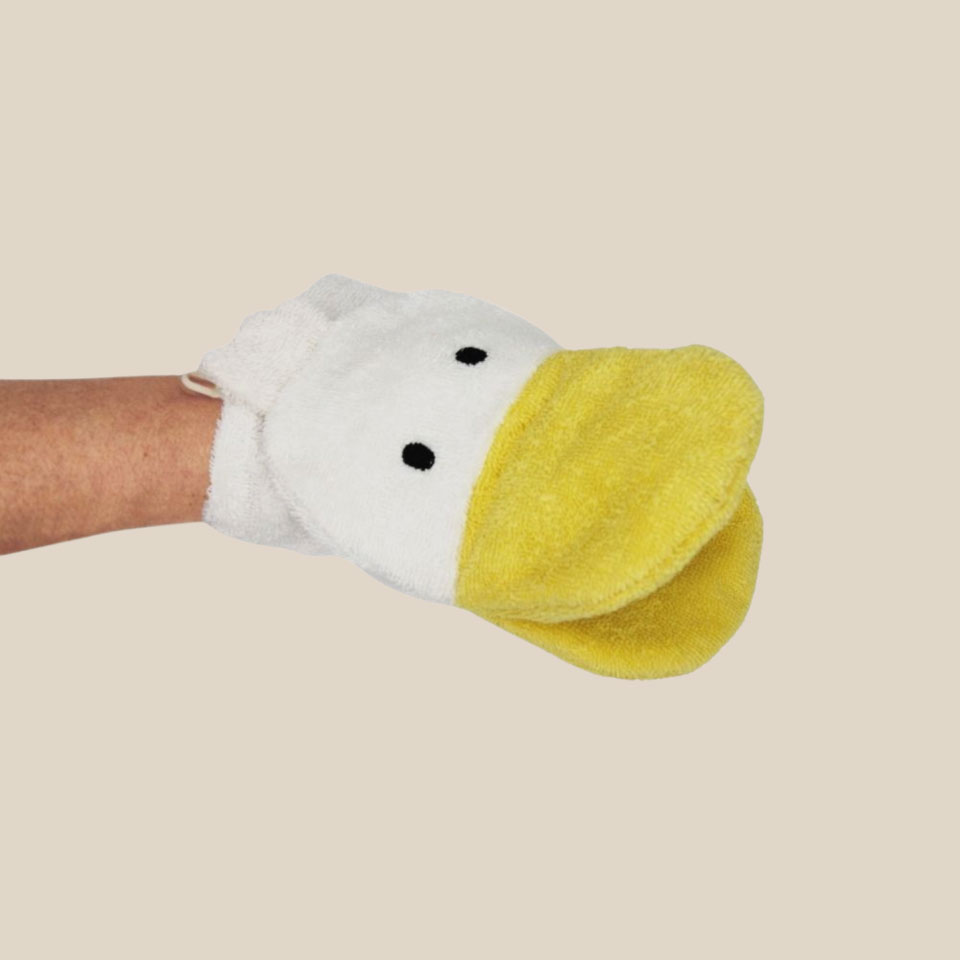 With its lively beak and bright plumage, this playful and friendly duck invites joy and complicity. Slip your hands into the wash mitt and bring this joyful companion to life: bath time becomes a playful and gentle moment to share with your child.