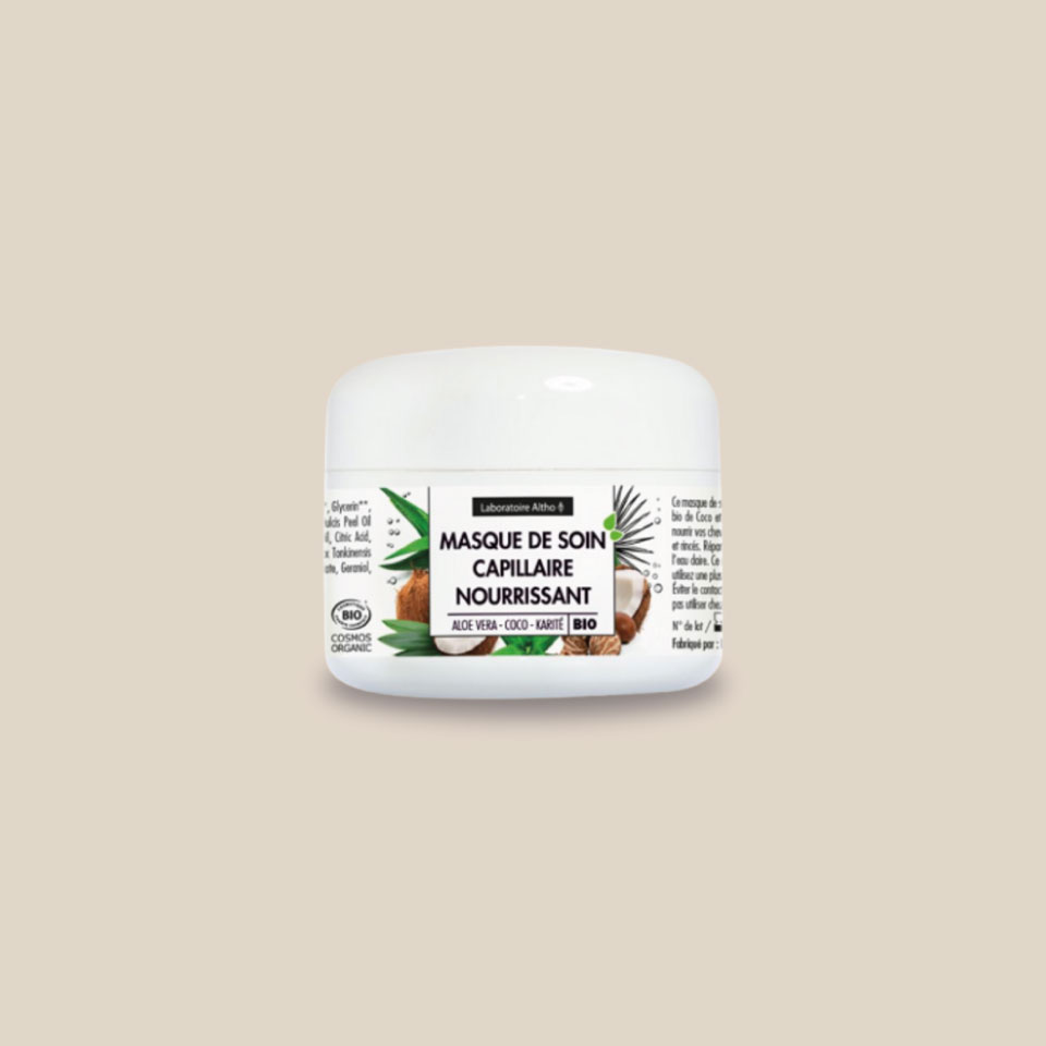 This certified organic nourishing hair mask combines the moisturizing properties of Aloe Vera, the restorative properties of Shea Butter and the softness of Coconut oil to provide deep care for dry, brittle or dull hair.