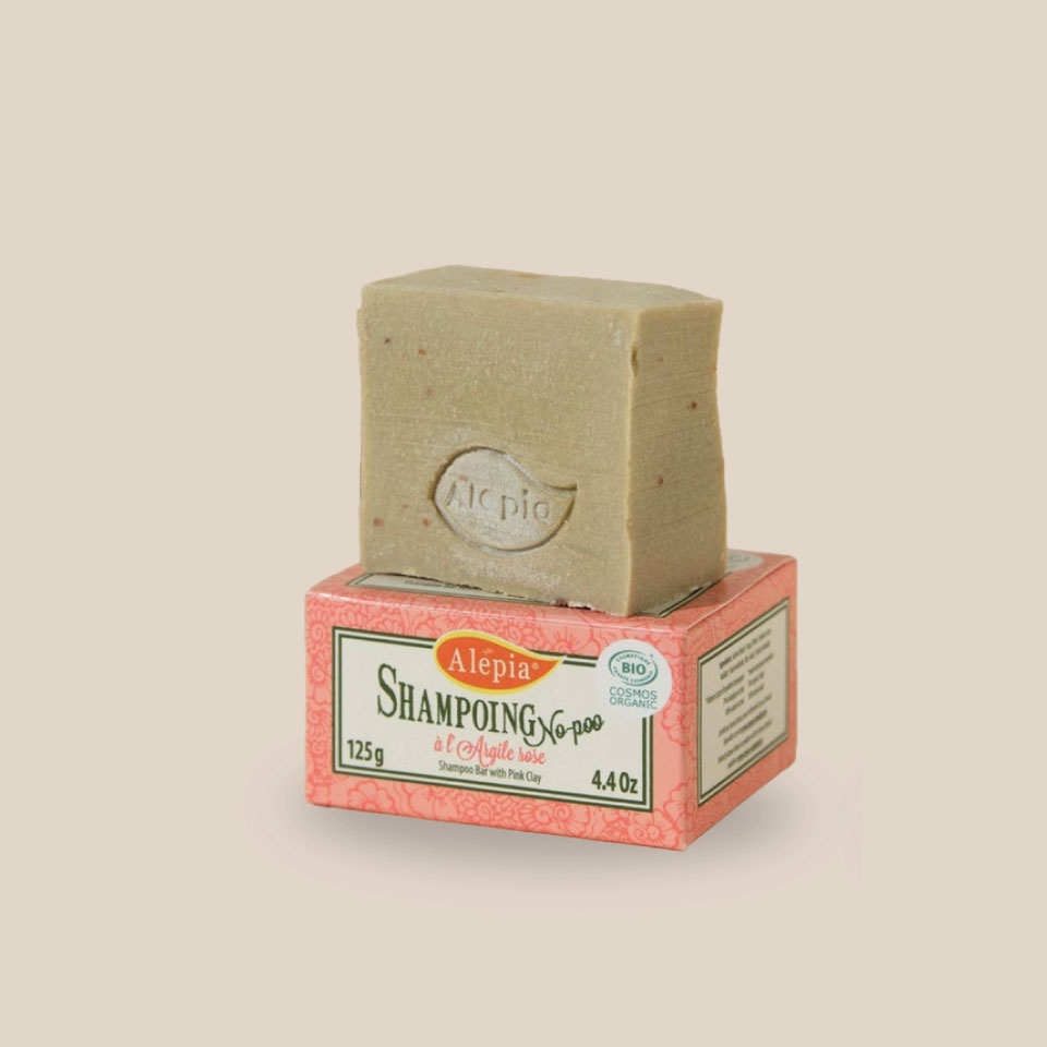 Une barre de Shampoing No-poo, enrichi à l’Argile Rose, rendant les cheveux souples et soyeux.