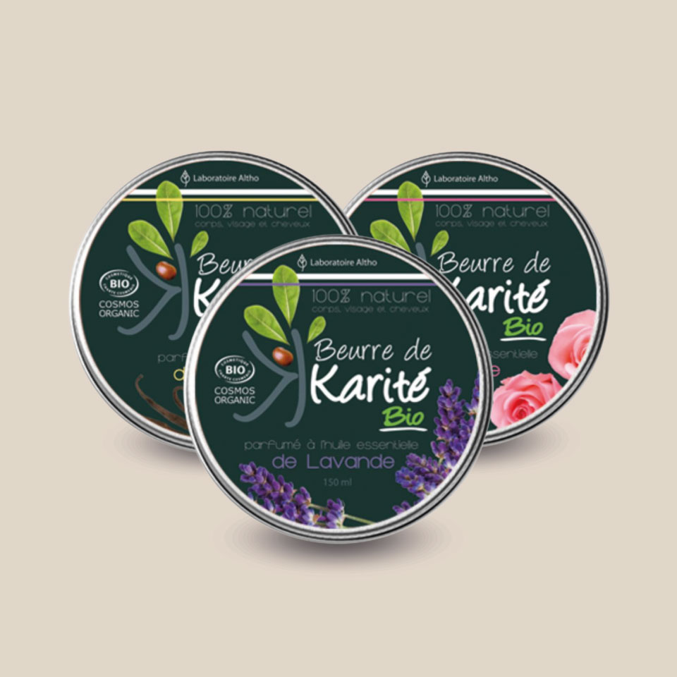 Le Beurre de Karité Bio parfumé du Laboratoire Altho est un soin multi-usage 100 % naturel, obtenu par pression à froid des noix de karité issues de l’agriculture biologique.