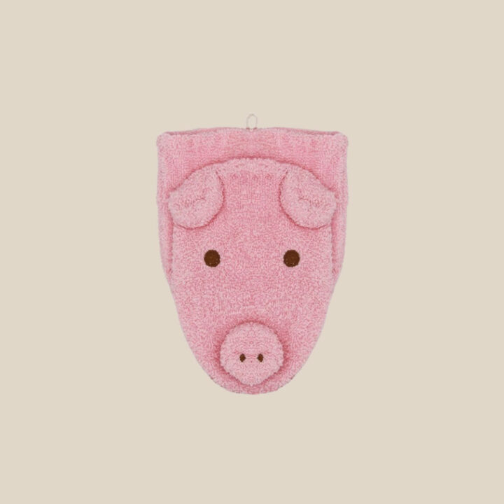 Avec son petit groin rond et ses joues rebondies, ce cochonnet adorable invite à la gaieté et à la douceur. Glissez vos mains dans le gant de toilette et donnez vie à ce compagnon malicieux : le bain devient un moment de jeu et de complicité à partager avec votre enfant.