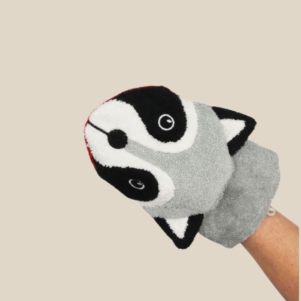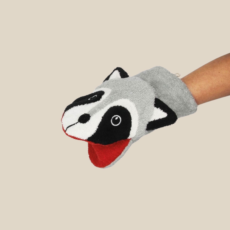 Avec son masque caractéristique et son regard malicieux, ce raton laveur espiègle invite à l’aventure et à la découverte. Glissez vos mains dans le gant de toilette et donnez vie à ce compagnon joueur : le bain devient un moment de complicité et de plaisir à partager avec votre enfant.
