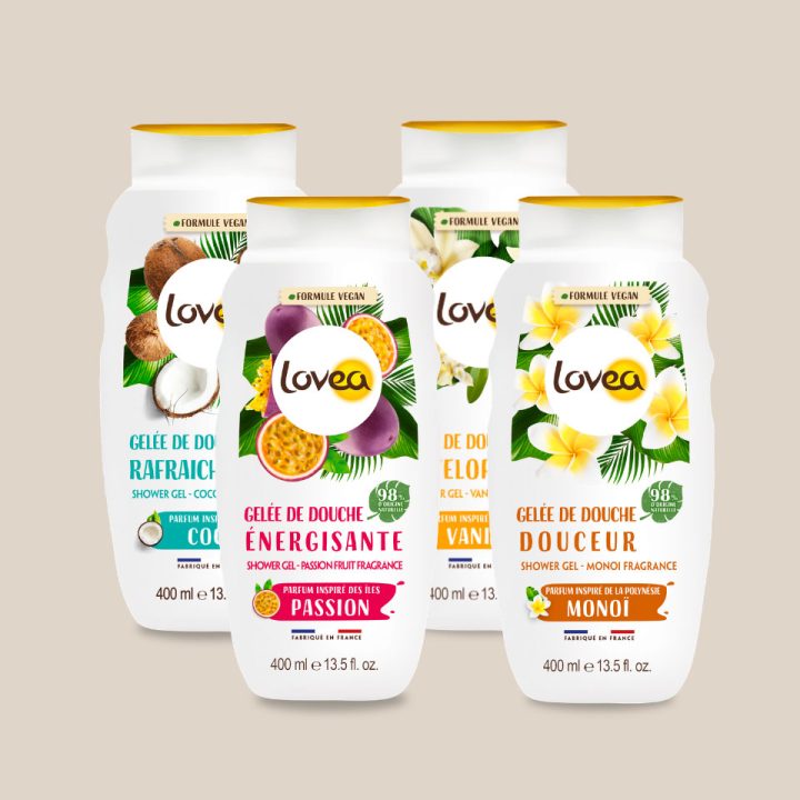 Gel douche aux formules associées d’agents moussants doux, sans tensio-actif sulfaté, à base de glycérine et au pH neutre