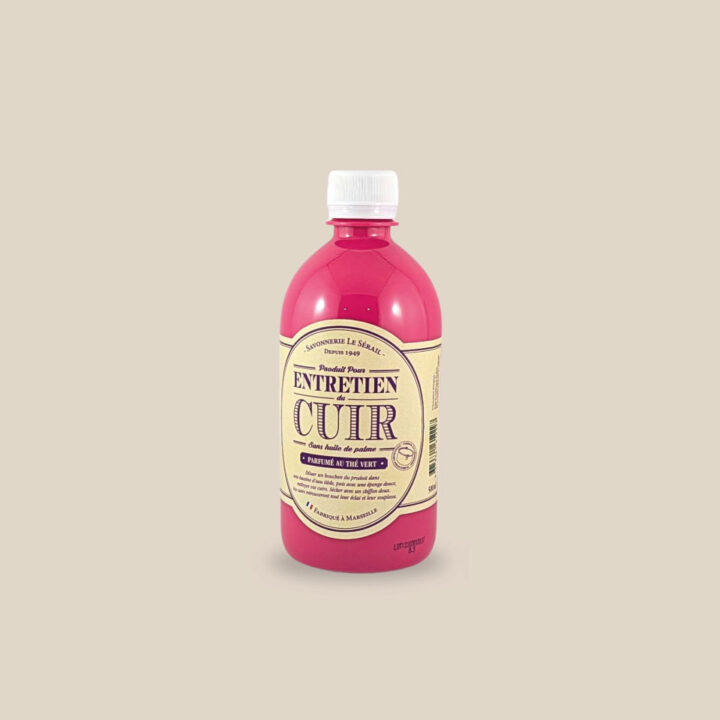 Sa formule naturelle, élaborée selon la méthode traditionnelle de cuisson au chaudron, associe les vertus nettoyantes du savon de Marseille à une texture fluide facile à appliquer. Elle élimine la saleté, ravive l’éclat du cuir et préserve sa souplesse sans l’agresser.