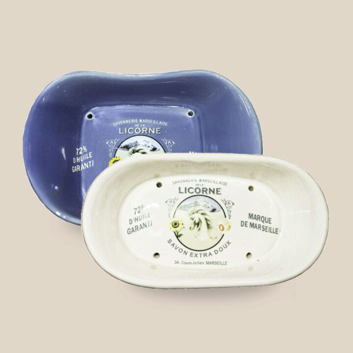 Découvrez le porte-savon en céramique de La Licorne, un accessoire pratique et élégant pour vos savons de Marseille et autres savons artisanaux.