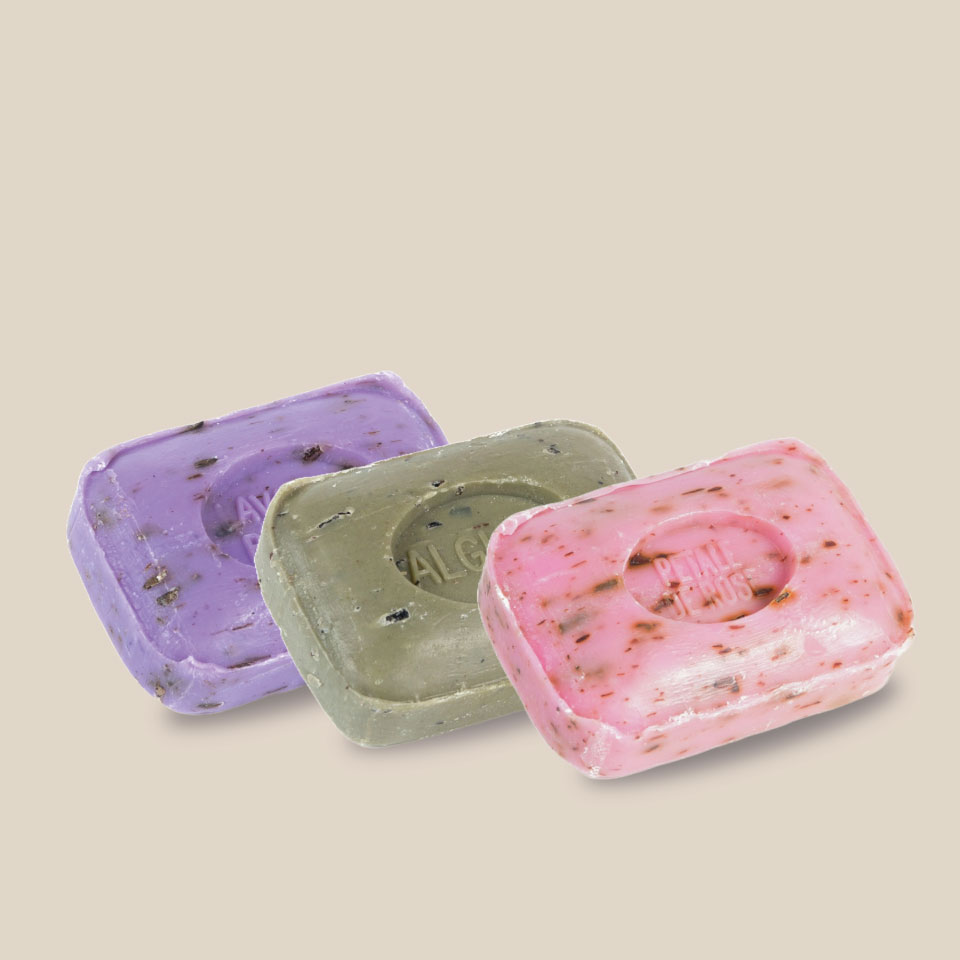 Conçu pour nettoyer la peau en douceur tout en éliminant les cellules mortes, ce savon laisse la peau lisse, douce et parfaitement préparée pour absorber les bienfaits des soins suivants. Chaque variante contient des éléments naturels spécifiques – algues, noyaux d’abricot, germe de blé, fleurs de lavande, pétales de rose, verveine ou vigne rouge – qui apportent des propriétés uniques : purification, tonification, apaisement ou stimulation de la circulation.